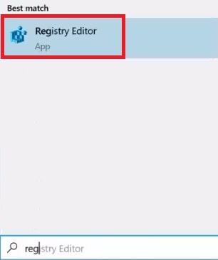 Premi il pulsante di Windows Vai alla barra di ricerca e inserisci”Editor del registro”.