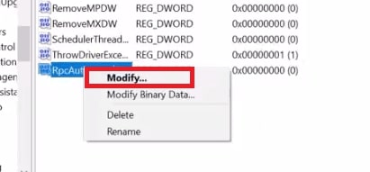 Ora, quando vedi il file DWORD rinominato nell’elenco, fai clic con il pulsante destro del mouse e scegli l’opzione”Modifica”.