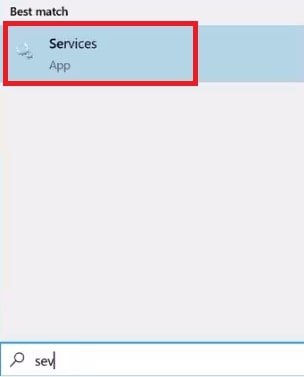 Ora, vai alla barra delle applicazioni. Nella sua casella di ricerca, inserisci il valore”Servizi”e premi il tasto Invio.