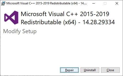 Una volta che il la riparazione è completata, è possibile eseguire il programma con successo.