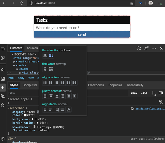 Oggi, i browser DevTools forniscono strumenti visivi altamente sofisticati che ti insegnano, ad esempio, la sintassi CSS mentre li usi. Questi strumenti cambiano le cose in modo visivo. Ad esempio, puoi fare clic sull’icona”Flexbox”accanto a qualsiasi proprietà CSS flexbox e viene visualizzato un popup che ti offre un’anteprima del risultato di tale modifica di stile.