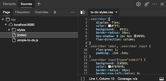 Questa è un’esperienza di debug eccellente e ti impedisce di dover cercare continuamente la sintassi CSS. Tuttavia, c’è una disconnessione, poiché il codice visualizzato in questi flussi di lavoro di debug non è quello che hai scritto nel tuo editor di codice.