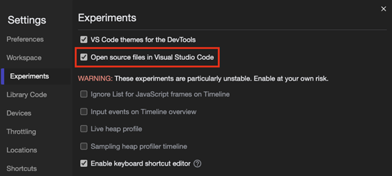 A partire dalla versione 96 di Microsoft Edge, puoi trovare un nuovo esperimento in DevTools chiamato “File open source in Visual Studio Code“.