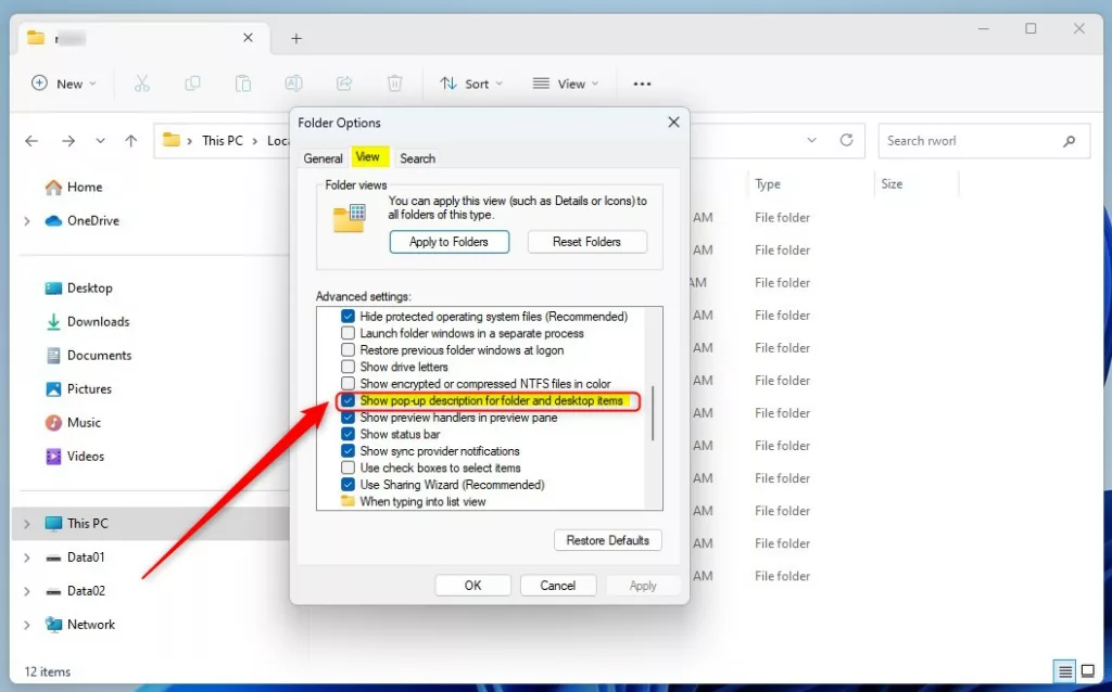 Questo articolo descrive i passaggi che è possibile eseguire per attivare o disattivare una descrizione popup per elementi di cartelle e desktop in Windows 11.