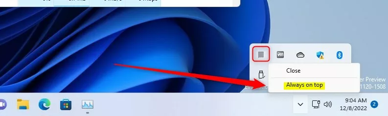 Mentre l’app Task Manager è aperta, fai clic con il pulsante destro del mouse sull’icona dell’app sulla Barra delle applicazioni (o Overflow della barra delle applicazioni), quindi seleziona”Sempre in primo piano“.