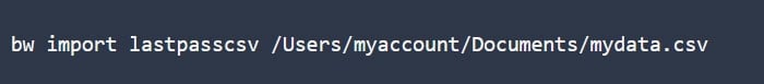 Puoi anche utilizzare Interfaccia della riga di comando di Bitwarden per importare le password dal file CSV di LastPass.
