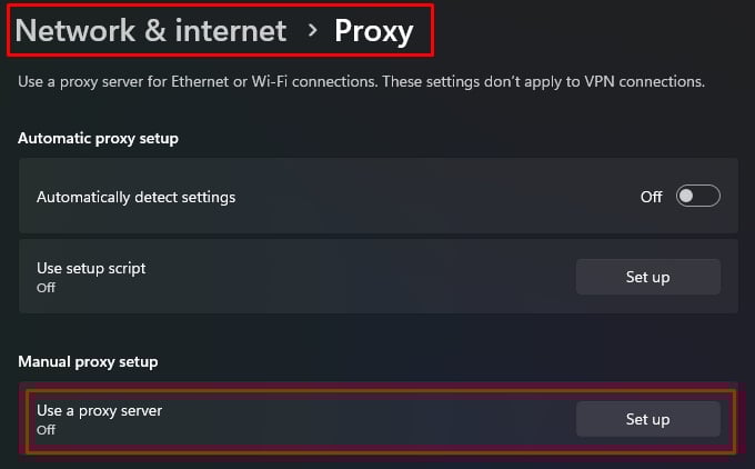 Allo stesso modo, puoi anche scegliere di accedere a Internet utilizzando server proxy. I server proxy sono simili alle VPN ma presentano vulnerabilità in termini di sicurezza. Tuttavia, se desideri utilizzare i proxy invece della VPN, ecco i passaggi per configurarli manualmente.