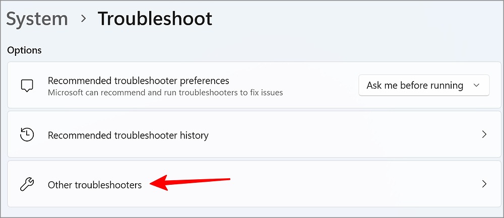 1. Vai a Menu Altri strumenti per la risoluzione dei problemi nelle Impostazioni di Windows (fai riferimento ai passaggi precedenti).