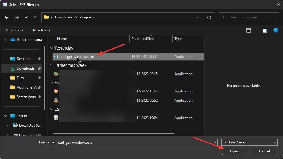 Seleziona il file exe del programma e premi il Pulsante”Apri”.