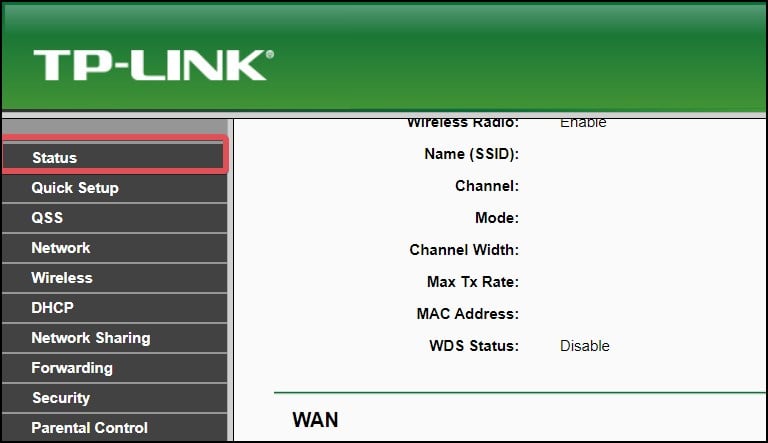 Apri il browser Web e accedi alla dashboard del router. Vai al menu Stato.