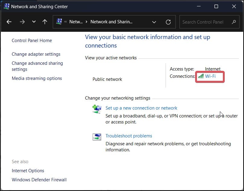 Vai a Rete e Internet > Centro connessioni di rete e condivisione.