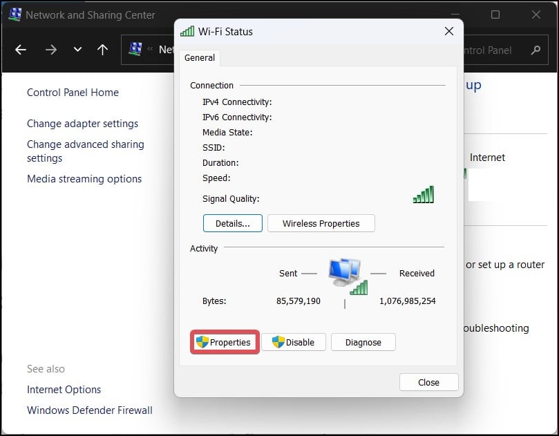 Fai clic sul pulsante Proprietà. Ethernet o Proprietà Wi-Fi si apriranno.