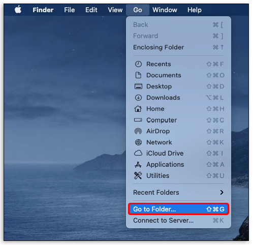 Seleziona “Vai alla cartella” dal menu a discesa.