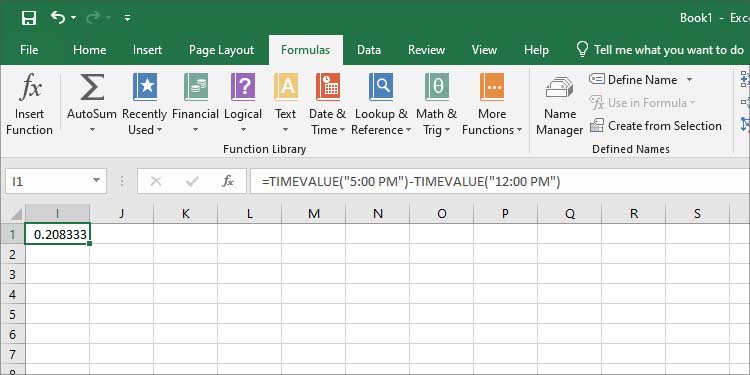 Ad esempio,=TIMEVALUE(“5:00 PM”)-TIMEVALUE(“12:00 PM”)