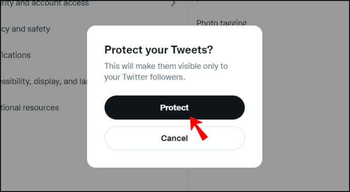 Controlla la sezione”Proteggi i tuoi Tweet”x sulla destra.