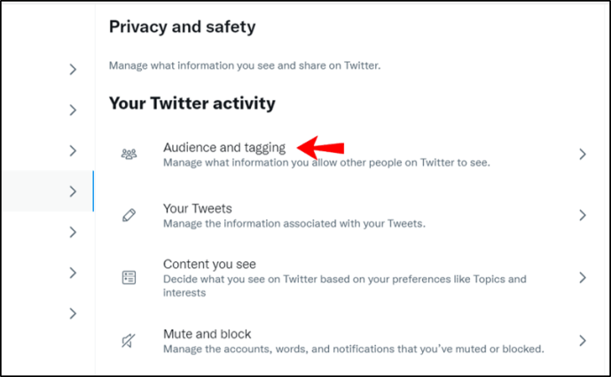 Sotto”La tua attività su Twitter”, seleziona”Pubblico e codifica”.