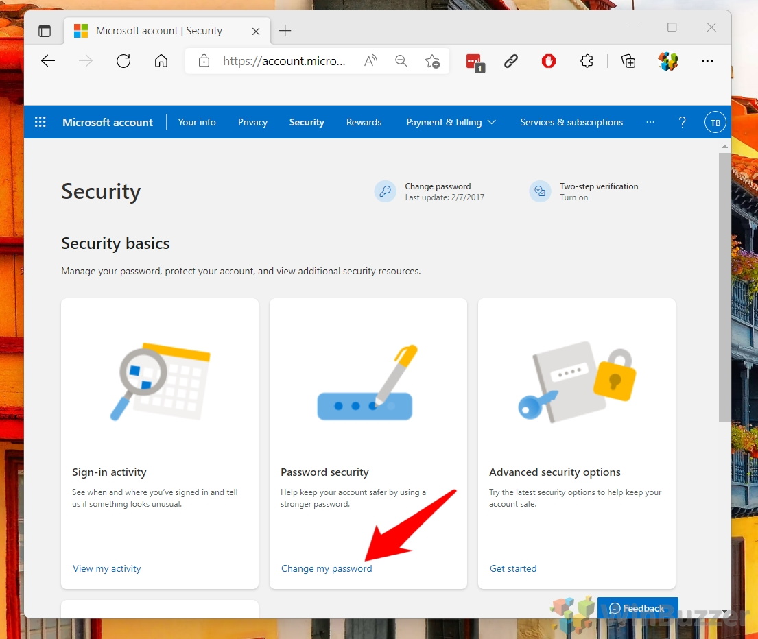 Passa a “Sicurezza” e fai clic su”Cambia la mia password”