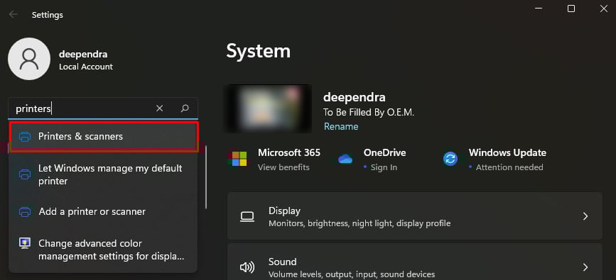 プリンターに割り当てた IP を覚えておいてください。プリンターを接続したのと同じネットワークにコンピューターを接続します。 設定を開きます。