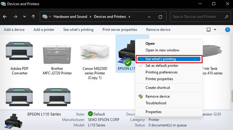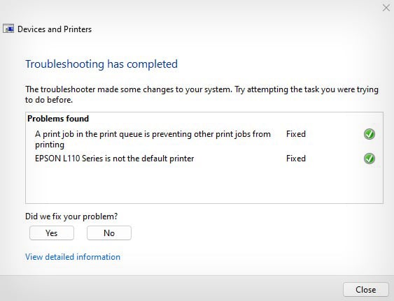 私の場合、トラブルシューティング ツールを実行して、Epson プリンターをデフォルト プリンターとして設定し、すべての印刷キューをクリアしました。ほとんどの場合、これら 2 つの方法で Epson プリンターのエラーを解決できます。