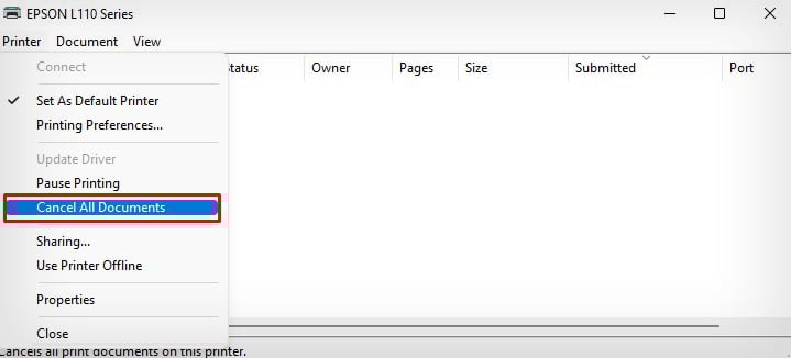 トラブルシューティングで問題が解決しない場合は、キューを手動でクリアして、Epson プリンターをデフォルトに設定することをお勧めします。