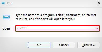 ファイル名を指定して実行を開いて、そこに「control」と入力します。 Enter キーを押します。