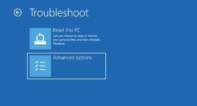 Windows 回復環境に入ったら、[トラブルシューティング ] > [詳細オプション] に移動します。