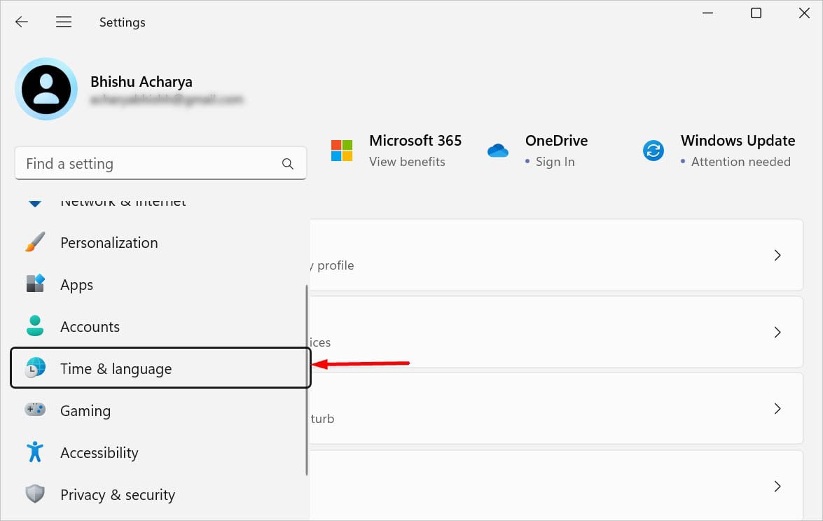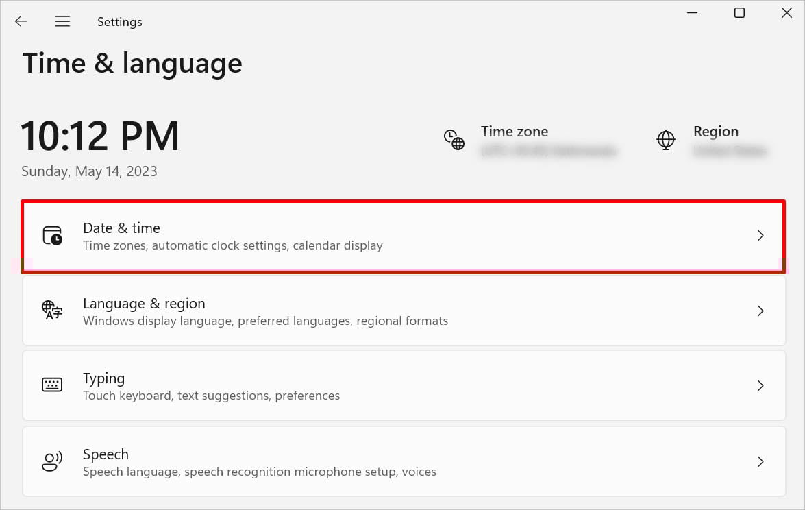 Windows + I ホットキーを押して、Windows の設定を開きます。左側のペインで、時刻と言語を選択します。