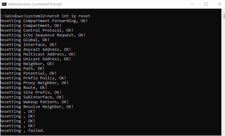 netsh int ip リセット (TCP/IP スタックを再インストールします)