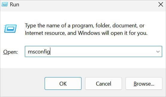 ファイル名を指定して実行ユーティリティで msconfig コマンドを実行し、システム構成 アプリケーションを開きます。