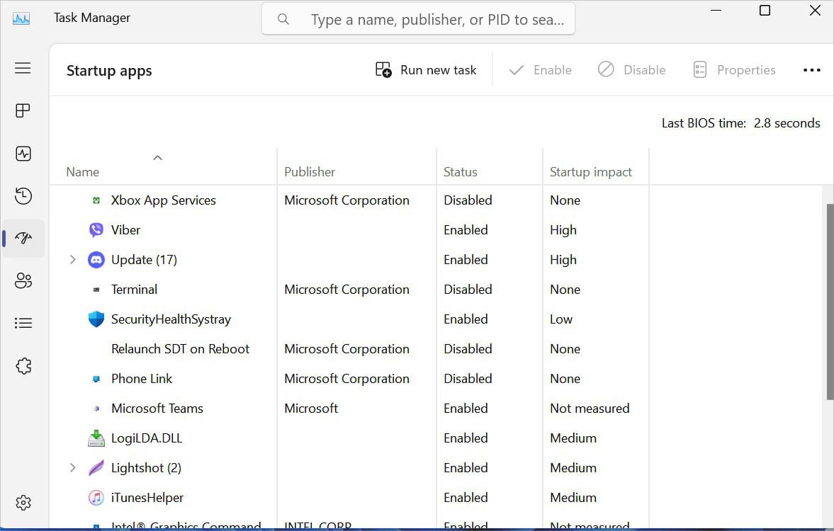 タスク マネージャーに移動したら、 続けてすべてのアプリケーションを無効にします。