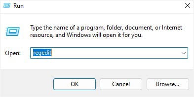 [ファイル名を指定して実行] で regedit コマンドを使用して、Windows レジストリ エディタを開きます。