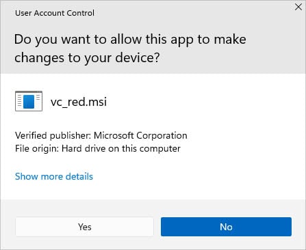 UAC プロンプトで [はい ] を押して昇格を指定します。アクセス。