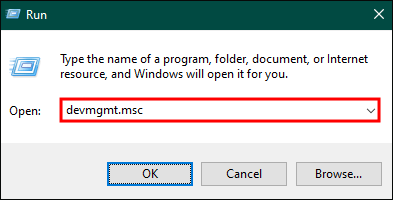 「Windows + R」を選択し、「devmgmt.msc」と入力して、「OK」をクリックします。