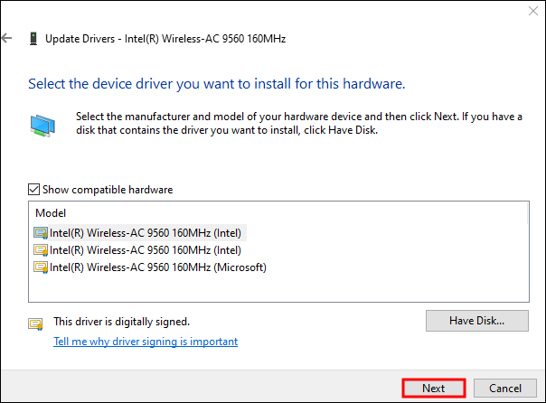 ネットワーク アダプター ドライバーを選択し、[次へ] をクリックします。