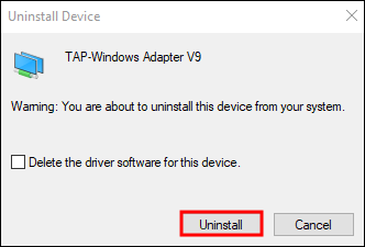 アダプターを見つけて、「デバイスのアンインストール」をクリックします。