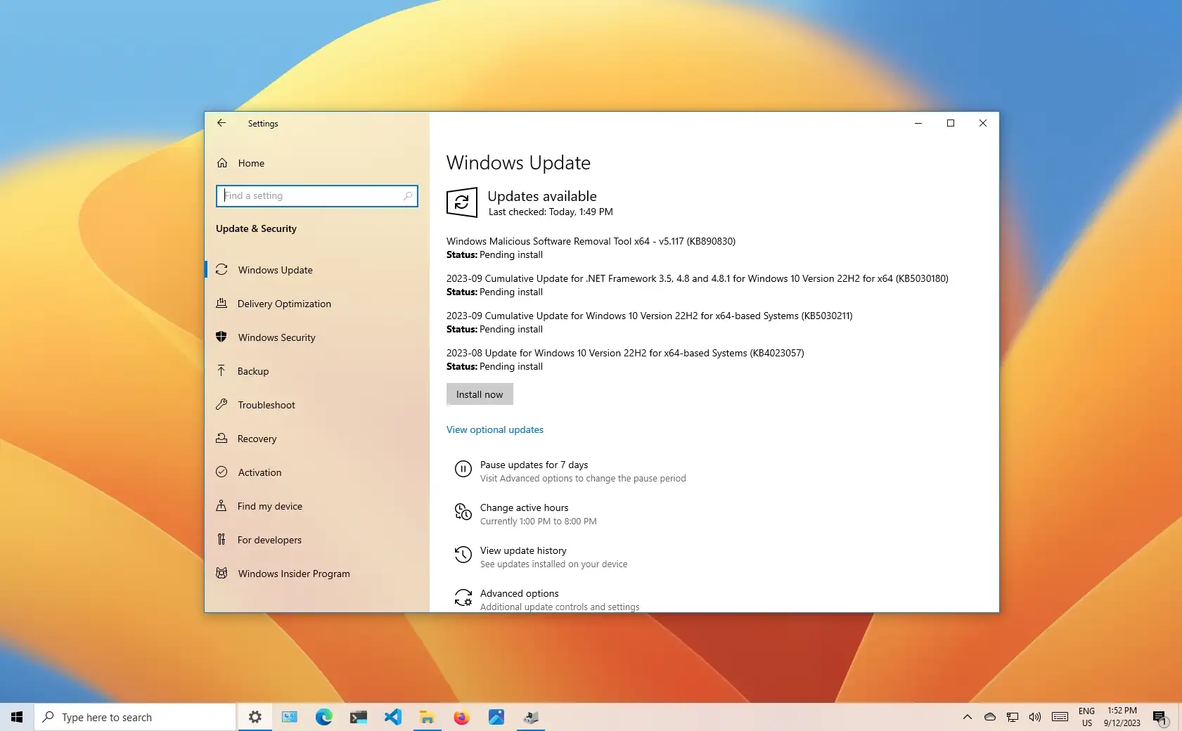アップデートはすぐに利用可能になり、安定版チャネルを通じて自動的にダウンロードおよびインストールされます。ただし、[設定]>>[更新とセキュリティ]>[Windows Update] からいつでも更新を強制できます。[更新の確認] ボタンをクリックし、オプションのアップデートをインストールするオプションを使用します。