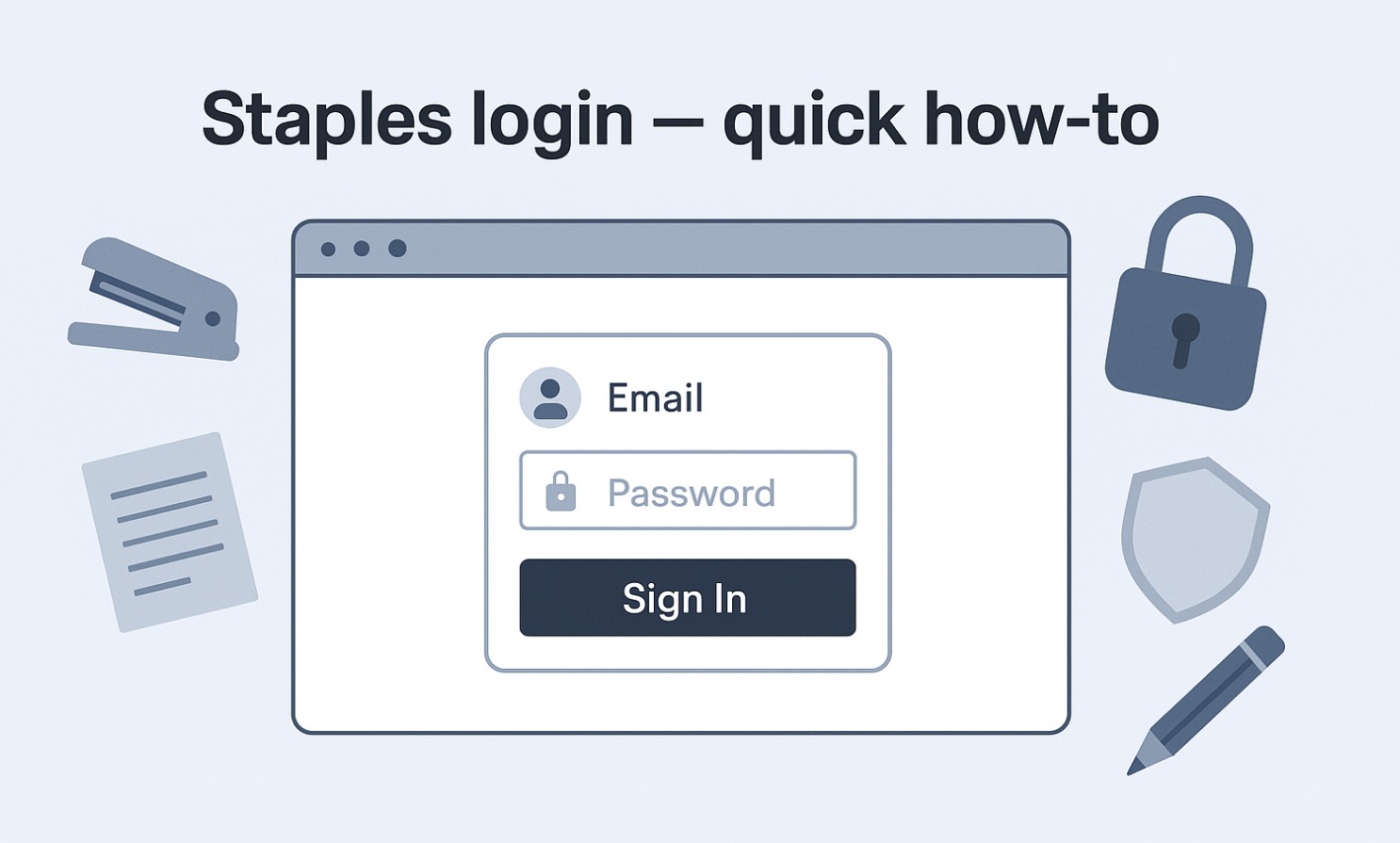 アカウントのメールとパスワードを準備する前に。 必要なポータルを知ってください:staples.com(ショッピング +報酬)、Staples Business(B2B)、または印刷&マーケティング。 staples.comを開き、右上でサインインを選択します。 メールおよびパスワードを入力し、サインインを選択します。 プロンプトが必要な場合は、 2段階の検証を完了します。 ポイントとクーポンを表示するには、アカウントを開く→報酬。