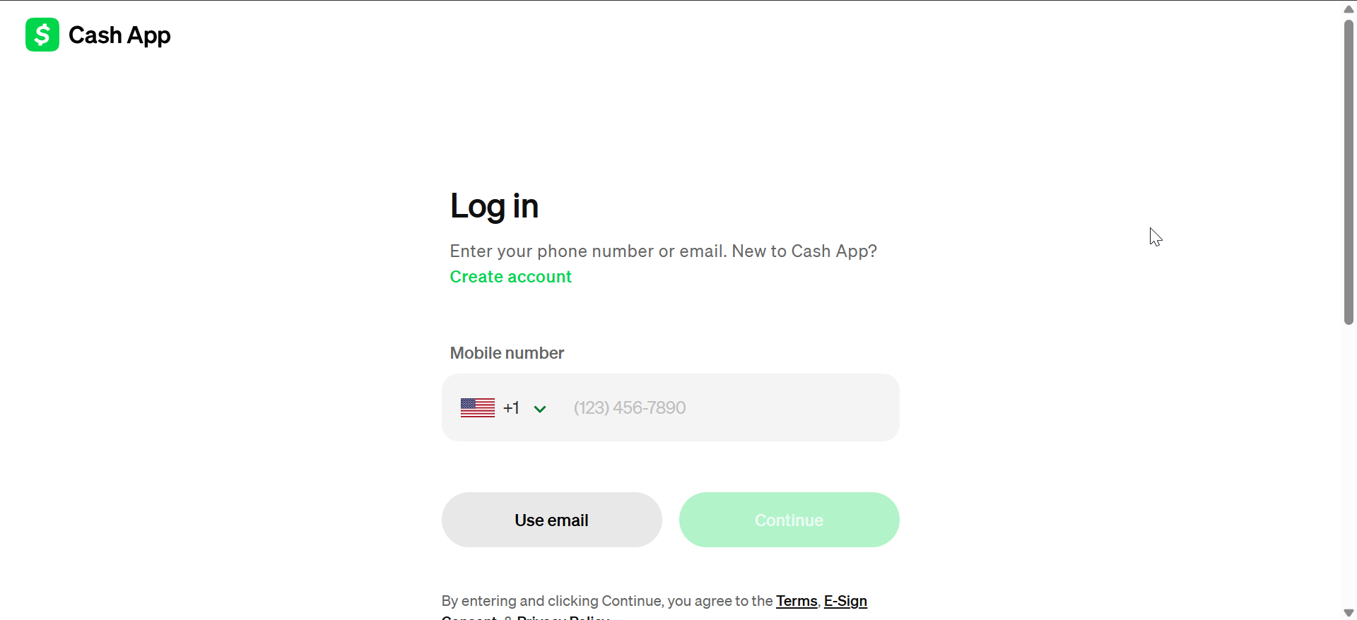 Web サイトにアクセスすると、Cash App アカウントにリンクされている電話番号または電子メールを入力するよう求められます。続行する前に、入力内容が正確であることを再確認してください。