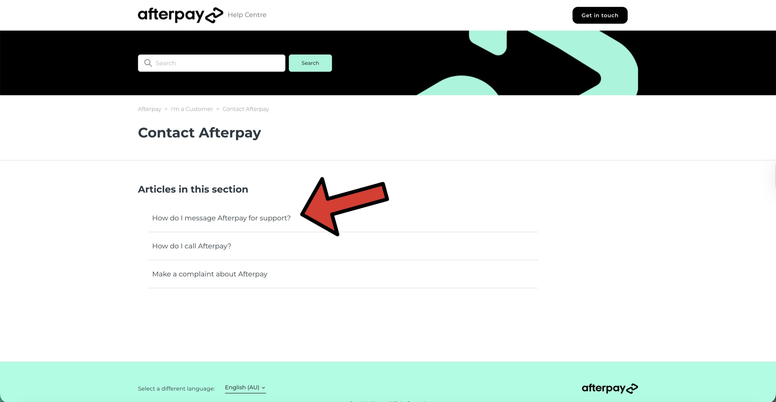 Afterpay アプリを開いてサインインします。ヘルプまたはサポートに移動し、メッセージ サポートを選択します。 トピック (支払い、アカウントへのアクセス、注文、返品) を選択し、問題について説明します。 必要に応じてスクリーンショットや領収書を添付して送信してください。