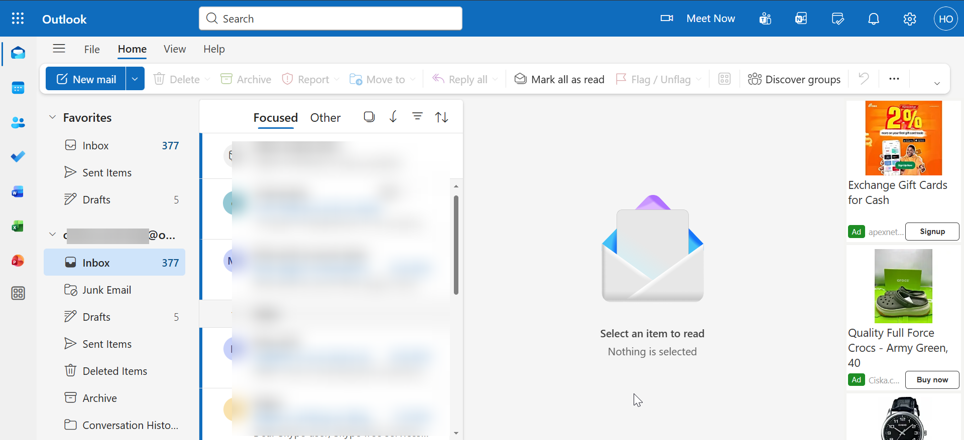 1) Web 上で Outlook 電子メールにアクセスします。