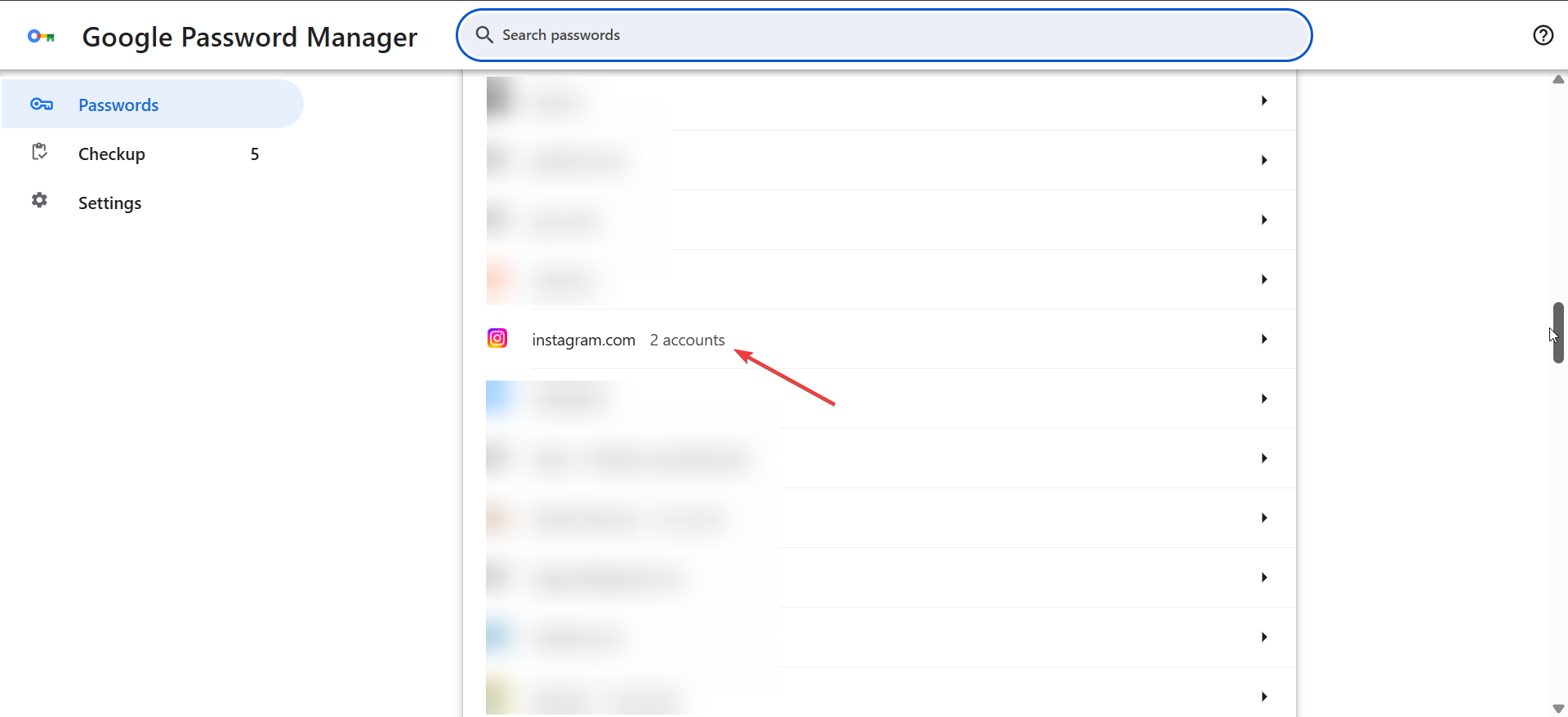 2) 保存した Instagram パスワードを見つけます