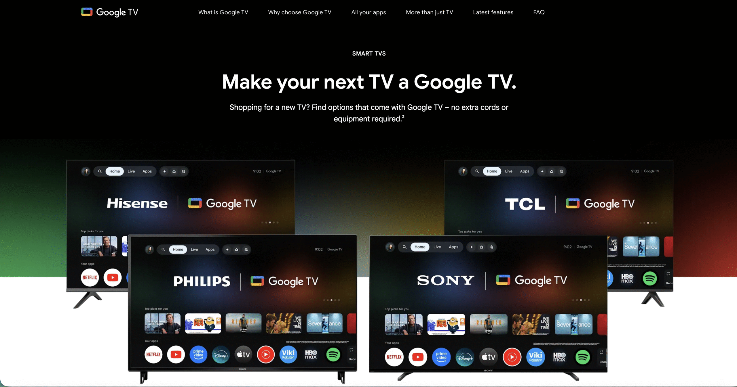 新しい Google TV モデルには、より高度な音声制御、スマート ホーム統合が追加され、一部のセットでは、検索とおすすめを改善するアップグレードされた AI 機能が追加されています。アプリは引き続き Google Play ストアからインストールしますが、エクスペリエンスはアイコン間を移動するのではなく、コンテンツの発見に重点を置いています。