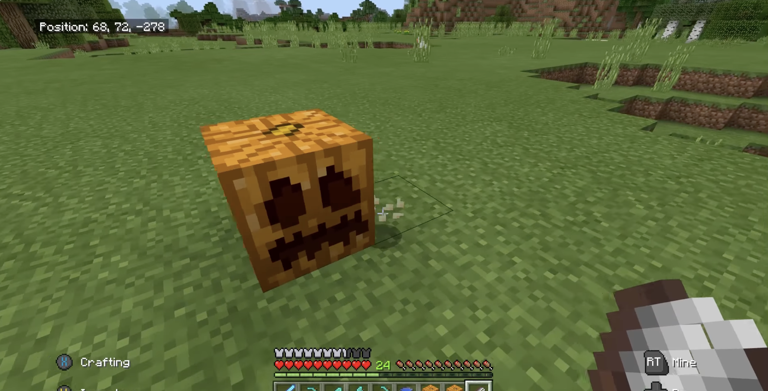 ジャック オー ランタンは、敵対的な Mob がその周囲にスポーンするのを防ぐのに十分な光を発するため、夜間の建築をより安全に保つことができます。