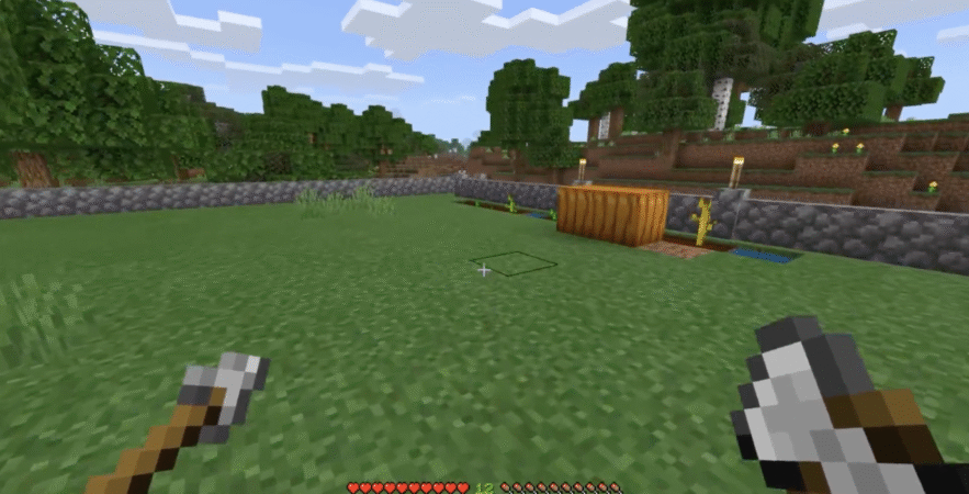 ハサミを手に持ちます。 カボチャを地面に置きます。 ハサミでカボチャを右クリックまたはタップして顔を彫ります。