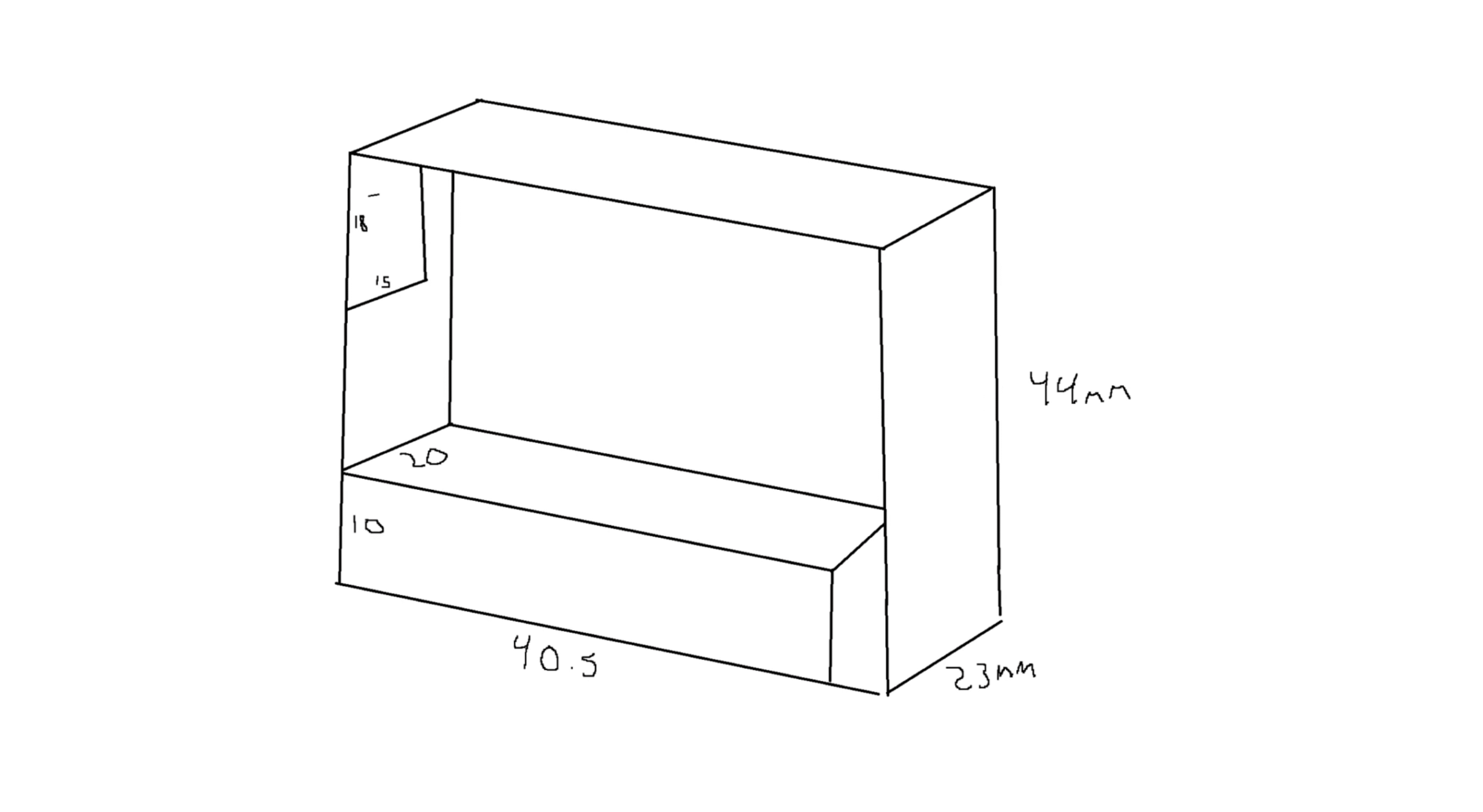 内部レイアウトのスケッチ-筐体、マザーボード、GPU、電源、ドライブ、ファン、ラジエーターを示す上面図と側面図を描きます。各部の大まかな寸法を記載します。