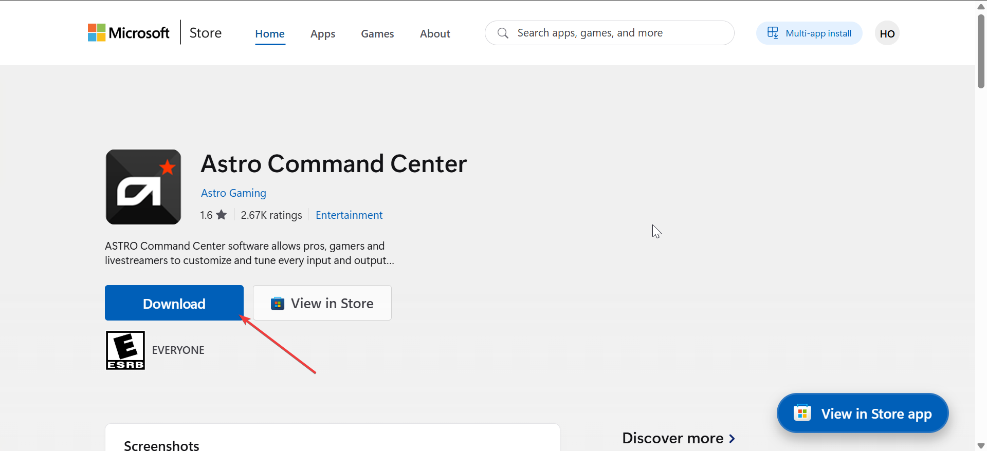 ベースのスイッチを切り替えます。ステーションまたはヘッドセットを PC モードに切り替えます。これによりファームウェアのフラッシュが有効になり、接続の失敗が防止されます。次に、Windows バージョンの Astro Command Center をダウンロードしてインストールします。
