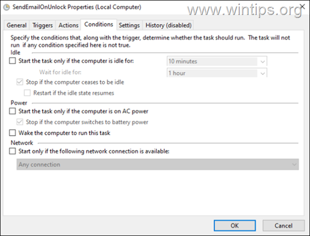 ステップ 2. Windows ロック解除時にスクリプトを実行するスケジュール タスクを Windows で作成します。
