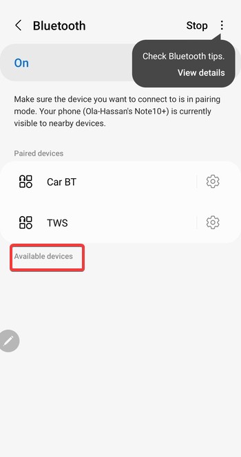 画面の上部にある Bluetooth アイコンをタップして有効にします。次に、Bluetooth アイコンを長押しして完全な設定に入り、[新しいデバイスをペアリング] をタップしてスキャンを開始します。