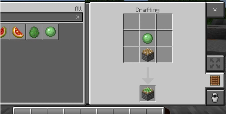 3×3 のクラフト グリッドの任意の場所にピストン 1 個スライムボール 1 個を配置します。粘着ピストンをインベントリにドラッグします。