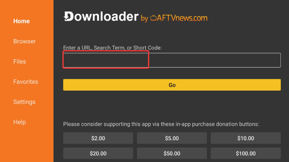 TV の App ストアを開き、Downloader を検索します。次に、ダウンローダーをインストールして開きます。次に、信頼できる Web サイトから Apollo TV のダウンロード URL を取得し、ダウンローダー アプリに入力します。